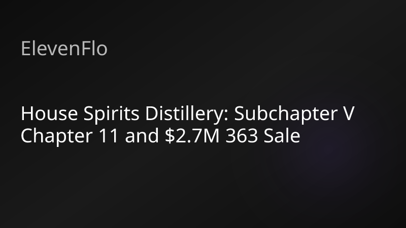 House Spirits Distillery: Subchapter V Chapter 11 and $2.7M 363 Sale